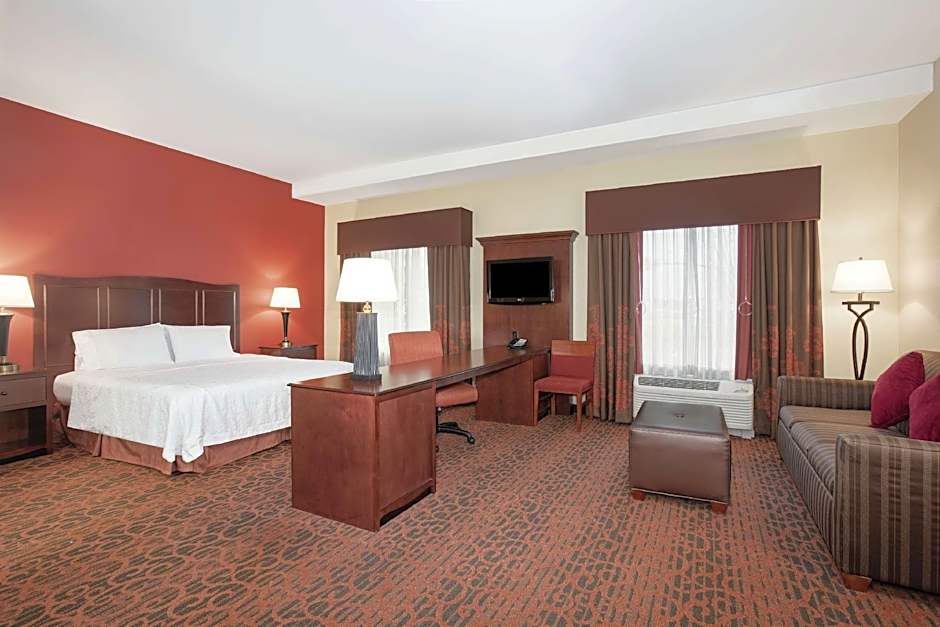 Any corresponding photo may not reflect the specific accessible room type or room feature. This mobility and hearing accessible, one-room, nonsmoking studio suite features one king sized bed and an accessible roll-in shower. The suite also has a visual alarm and notification devices for the doorbell or door knock and incoming phone calls. The room features include a microwave, refrigerator, comfortable soft seating, an HDTV and easy to operate alarm clock/radio. The free high-speed internet access will help you stay connected while on the road. If you prefer not to work at the desk, you can use the convenient lapdesk instead. You'll also enjoy the convenience of having a coffee maker with tea service as well as an iron/ironing board in your room.